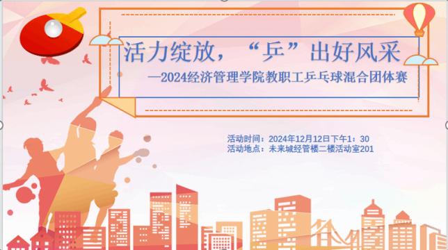 (通讯员:周玲 王林珠 摄影:胡启婧 胡松琴 王林珠 努尔夏提.居勒提)“活力绽放,‘乒’出好风采”。为了促进教职工之间的交流联系、增进教职工身心健康、丰富教职工业余文化生活和增强公司的凝聚力,tyc33455cc太阳成集团分工会特别组织了2024教职工乒乓球混合团体赛。比赛于2024年12月12日下午在未来城校区崇信楼(tyc33455cc太阳成集团大楼)二楼活动室举行。全院共30余名教职工人报名参与了此次比赛活动。根据各系及院直各单位报名情况,本次团体混合赛设男单、...
