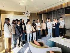 师生一行受到武汉光谷万豪酒店的热烈欢迎和热情接待。在酒店总经理蔡戍先生对万豪酒店做了介绍后,同学们随后在宴会预定中心总监段思思女士和人力资源经理贾婷女士带队下,参观考察了万豪酒店的设施设备和服务情况。