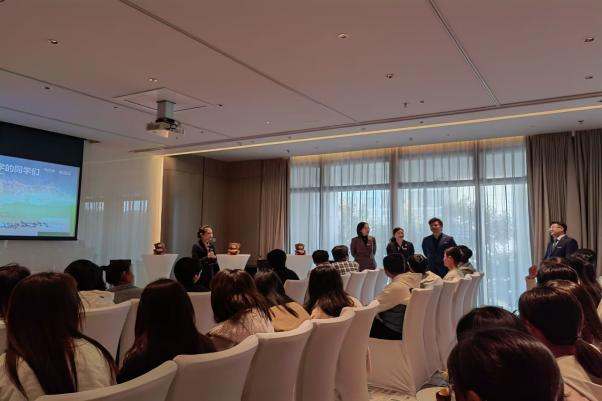 在互动环节,同学们详细询问了管培生的相关培养方式、酒店经营各部门协作、特色餐厅的主打菜系、各部门各职位对于情绪沟通能力等软实力的要求、对现在市场竞争中的竞争优势定位、总监一天的工作等问题。面对同学们对于职业规划选择和成长期较长的困扰,李总表示对于自己所选择的行业应有自己的思考和判断,以胡总、巢总为例分析了他们的成长周期,成长所需的努力和学习与成长期并不完全相关,鼓励大家在自己的长远目标的蓝图绘制中遵从本心。