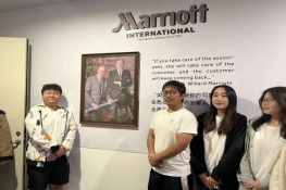 在企业文化区,同学们从老万豪、小万豪先生的合照开始,更加深刻地了解的万豪集团酒店的发展历程和旗下品牌,看到了从待客师到经理的培训课程和能力要求,对职业发展也有了进一步的理解。