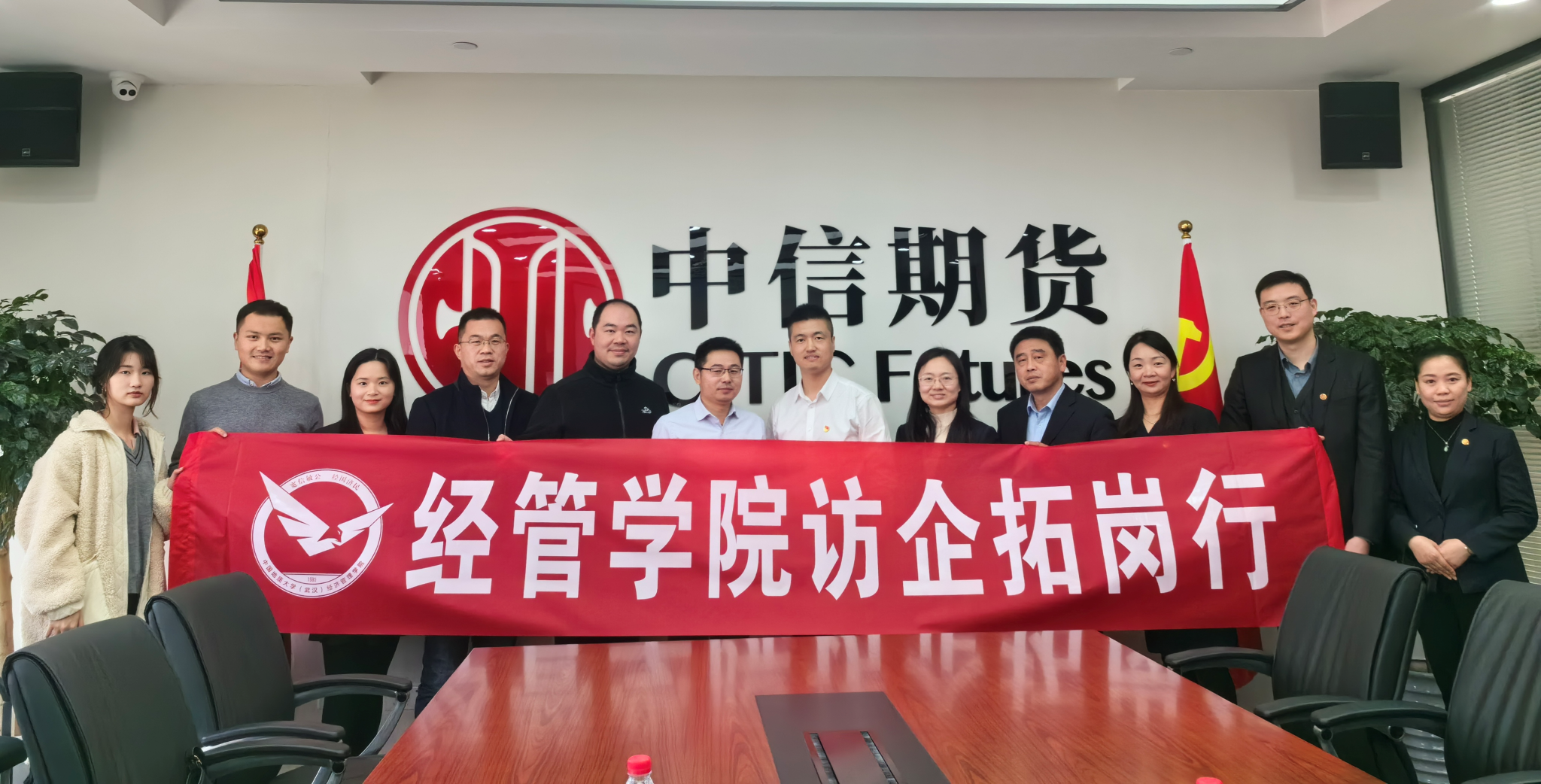 (通讯员 张弛 程茹)2024年1月10日上午,公司赴中信期货有限公司中南分公司开展校企合作座谈会。经理於世为带队,公司党委副书记李纪亮、大数据科学与应用统计系教工党支部书记王德运、辅导员张弛等人一同访企。中信期货中南分公司党支部书记及总经理苏仲博、副总经理兼产业客户部总监冯宇、运营管理部总经理刘骁、营销管理部总经理刘金红、渠道客户部总经理黄永凯、财富客户部总经理王勇以及党支部组织委员方赢出席会议。