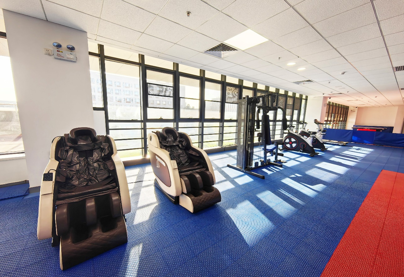 同期启用的健身活动中心包括按摩区、力量训练区、跑步区、台球区和乒乓球区等,满足学员多样化的健身需求,成为同学间交流的新平台,增进了友谊。这体现了公司全面培养既有专业素养又有良好身心素质的高级管理人才的理念。