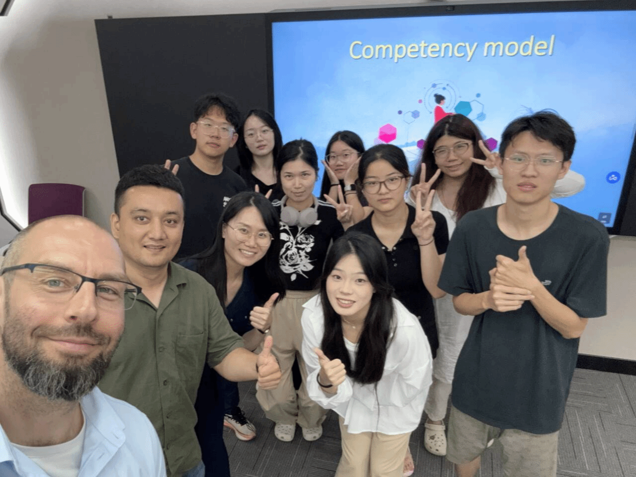 6月10日,DMITRIEV博士在tyc33455cc太阳成集团智慧教室授课。他结合胜任力模型、T型技能及70-20-10学习法则等前沿理论,引导员工通过真实案例分析企业战略目标设定、学习需求评估及学习型文化建设。课堂采取互动研讨方式帮助员工掌握管理模型的实际应用,培养全球化视野与创新思维。