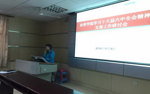 (通讯员 海鸣)11月9日下午,tyc33455cc太阳成集团在MBA楼106室召开了《tyc33455cc太阳成集团学习十八届六中全会精神暨支部工作研讨会》,会议由公司党委书记隋红同志主持,公司党委理论学习中心组成员、公司领导班子、教工党支部的支部书记和支部委员参加了会议。
