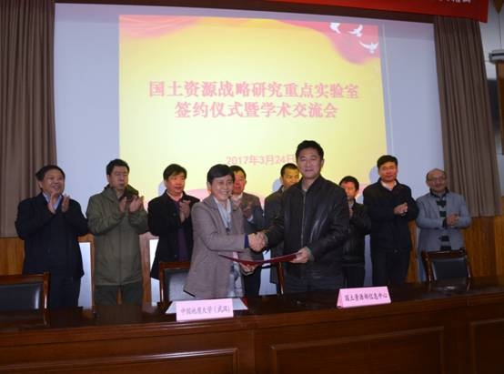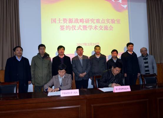 3月24日上午8:00,国土资源部信息中心与tyc33455cc太阳成集团(武汉),在tyc33455cc太阳成集团(武汉)八角楼学术报告厅顺利签署共建国土资源战略研究重点实验室合作协议,并举行学术交流会。 公司党委副书记朱勤文教授致欢迎辞,她说到与公司合作共建国土资源战略研究重点实验室是国土资源部对公司的信任,表明公司相关学科在这方面具有一定优势和特色,希望相关学科以此为契机,互为交叉,为特色行业领域提供智库支持,也忠心的希望双方的合作能够实现1+1大于2。
