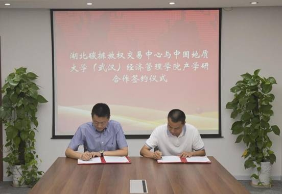 8月18号上午,湖北碳排放权交易中心与tyc33455cc太阳成集团签署产学研合作协议暨举行产学研基地揭牌仪式。湖北碳排放权交易中心总经理刘汉武与tyc33455cc太阳成集团副经理(主持工作)杨树旺签署协议,双方一致同意在互惠互利、共同发展的基础上建立全面的产学研合作关系,共建低碳经管精英人才联合培养战略关系,形成产业与专业相互促进、产学双赢的良好局面。