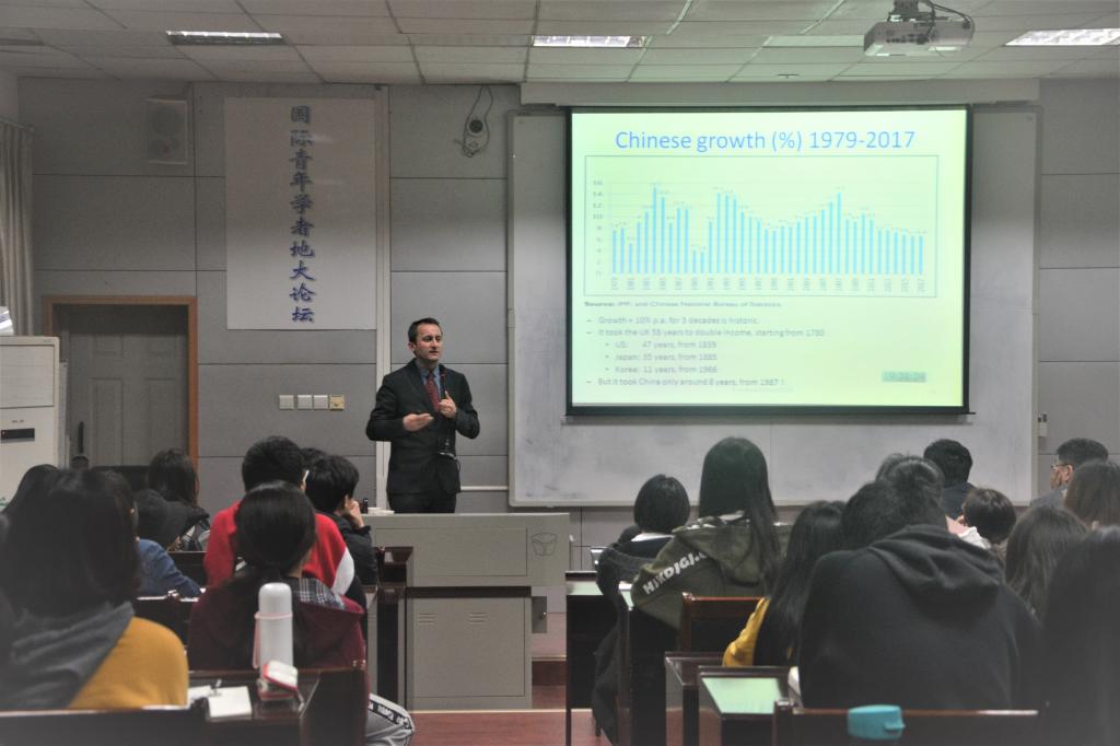 讲座开始前,肖经理代表公司对Andrew Farlow 研究员的到来表示欢迎。Andrew Farlow研究员为大家带来讲座:中国与世界经济。他讲到,当前全球经济正处于动荡之中,金融、经济、政治和社会都存在不稳定的风险,而本次讲座探讨了金融危机前后采取的经济模式和政策中出现的问题以及到现在仍然存在的问题。Andrew Farlow研究员分析了美国、中国、俄罗斯、欧盟(特别是英国脱欧之后)和新兴经济体的当代形势,同时他还研究世界贸易,全球化和保护主义不断变化的形态,并讨论政策制定者应如何应对以上情况。老师和同学们认真学习,获益匪浅。