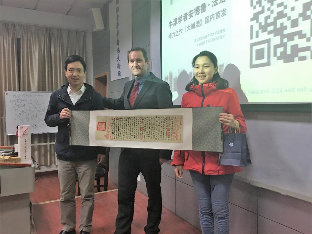 提问环节,Andrew Farlow研究员与现场师生亲切互动,老师和同学们用流利的英语向Andrew Farlow研究员提出了自己的疑惑,Andrew Farlow研究员作出了详细的回答。最后,Andrew Farlow向大家介绍了自己即将发表的新书 “Crash and Beyond” 的中文版。