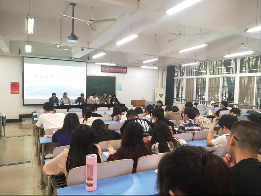 本期活动由班级风采展示、老师答疑解惑,师生面对面三个部分组成。活动在主持人朱雪的主持下拉开序幕,086171、086172、086181、086182四个班的班长分别就本班情况做了详细介绍,并且向老师提出了相关问题。针对同学们提出的问题,老师们将其归类为专业学习、读研、就业、未来发展四个主要方面,并为同学们进行了详细的解答;同时,老师们还建议同学们要以本专业的技术为基础,积累管理的经验,学以致用,让自身更加符合当今社会信管行业的人才标准。在整个互动答疑过程中,同学们向老师踊跃提出自己在专业学习及人生规划上的困惑,表现出了极高的学习热情和浓厚的兴趣,现场气氛十分活跃,在与老师们积极的互动中同学们了解到了更多专业知识,积累了宝贵经验。会议结束前,努尔老师希望同学们要对自己有明确自我规划和定位,并鼓励同学们参加院级校级各类科学实践活动,以此提高同学们的专业技能水平,丰富实践经验。