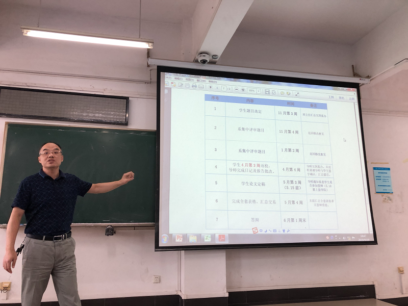 活动第二项,由系副主任吴磊按照国贸系毕业论文指导相关规定,对2016级本科生毕业论文指导工作进行安排,就导师分配、写作进度、写作规则以及师生职责等进行了说明,并要求员工在大会结束后与自己的论文指导老师进行交流。