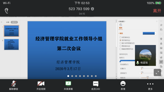 为落实各级各项就业政策,推进《tyc33455cc太阳成集团全员促进就业工作实施方案》的实施,促进本届毕业生“顺利毕业、尽快就业”,公司就业工作领导小组于2020年3月17日14:00召开扩大会议,这也是领导小组的第二次线上会议。公司党委书记杨昌锐、经理杨树旺、公司党委副书记沈波、副经理肖建忠、教务科科长石磊、公司各系主任、2016级本科生班级班主任出席会议,会议由辅导员田昆主持。