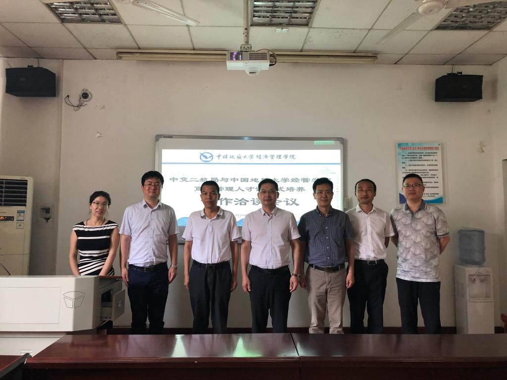 (通讯员 徐媛)2020年6月30日,中交二航局党委组织部副部长、人力资源部副总经理刘进,商务管理部总经理助理许志强,人力资源部招聘业务主管张成良来访公司,洽谈商务管理人才订单式培养事宜。tyc33455cc太阳成集团经理杨树旺,副经理肖建忠,工程管理专业负责人宫培松,工程管理专业教师丁丽萍,管科系辅导员徐媛出席会议。会议由肖建忠教授主持。