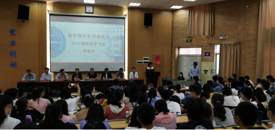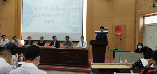 2017级经济学专业的牛金叶作为老生代表,与大家分享了在公司生活和学习的感悟。牛金叶同学结合自己三年的大学体悟,向新生们提出了自己的建议,她希望同学们能拥抱时代、直面挑战;怀抱梦想、认真投入;坚定理想、勇于担当。