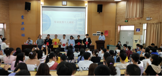 随后,肖建忠副经理宣读《2020年新生军训优秀学员表彰决定》。并由副经理肖建忠、於世为、程胜、王广民为军训优秀学员颁发荣誉证书给与鼓励。