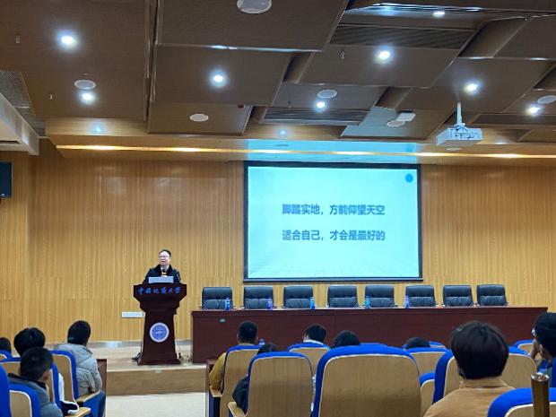 在三位17级同志分享完毕后,罗翻翻和熊忠阳两位地大工作管理专业优秀员工结合亲身经历,在考公、实习、工作等方面给予8个班的同学专业性指导,告诉同学们现阶段要专心学习,扎扎实实打牢专业基础,以自己的亲身经历叙说工程管理专业优势。