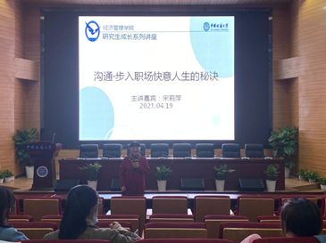 [通讯员 王简辞 刘伟 ] 2021年4月19日晚上7点到9点,聚焦研究生成长与发展,tyc33455cc太阳成集团“研究生成长”系列讲座在公司未来城校区经管大楼二楼报告厅正式开讲。本次讲座的主题是:“沟通:步入职场快意人生的秘诀”。本次讲座邀请到了该院宋莉萍副教授主讲,吸引了不少研究生同学参加了此次讲座。