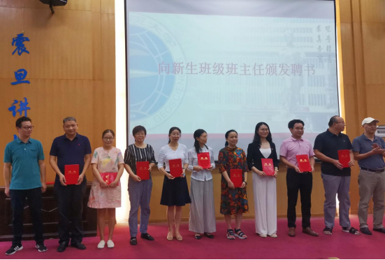 典礼第七项,副经理肖建忠、副经理程胜为新生班主任颁发聘书。