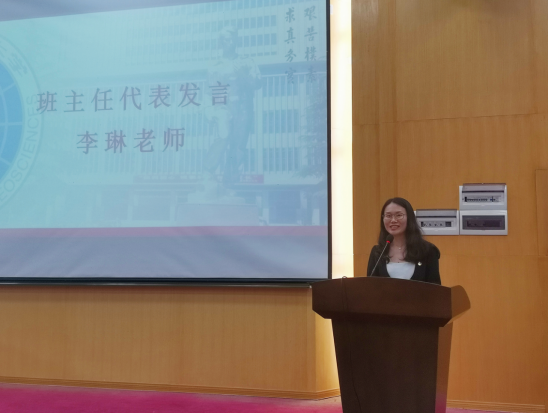典礼第三项,新生班主任代表李琳老师发言。李老师对新生提出了三点希望。一是希望大家能够找到理想的目标和人生信念,对即将到来的老员工活做好规划;二是希望大家能够不负韶华,奋勇向前,有计划、有步骤地走好每一步;三是希望大家做一个有担当的人,勇担时代赋予我们的使命,不断用知识来充实自己。