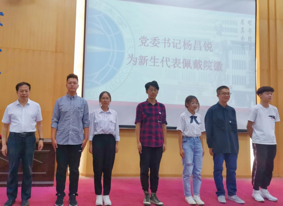 典礼第六项,公司党委书记杨昌锐为新生代表佩戴院徽。