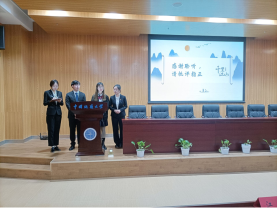 在主持人宣读完比赛规则后,各队伍依次开始答辩。7支队伍依次展示自己的ppt并回答老师提问,评委老师认真详细地给出了修改建议。