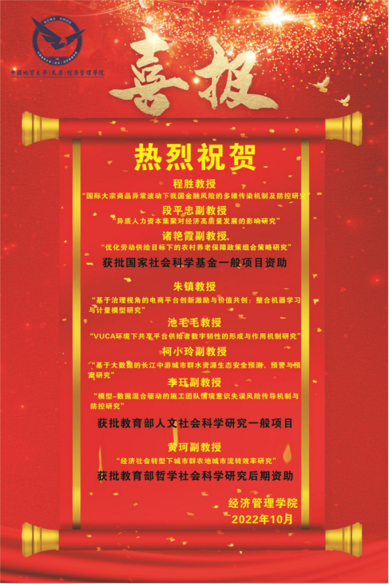 日前,全国哲学社会科学工作办公室发布了“2022年国家社会科学基金年度项目和青年项目立项结果公布”,公司6项获批国家社会科学基金一般项目资助,公司3个项目获批资助。
