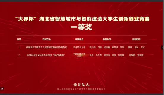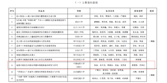 本次比赛,tyc33455cc太阳成集团工程管理专业与计算机公司计算机类专业员工组成联队(团队成员:张淦、肖天龙、周晓洁、吴迪、吴昊宸),在郭聖煜和宫培松老师的指导下,携参赛作品“起重吊装安全风险协同感知智能装备的研发与应用”进入决赛,最终从大赛主赛道来自98所高校的107支队伍的参赛作品中脱颖而出,荣获一等奖。此前在“大界杯”湖北省智慧城市与智能建造老员工创新创业竞赛中,该参赛作品已经获得一等奖。