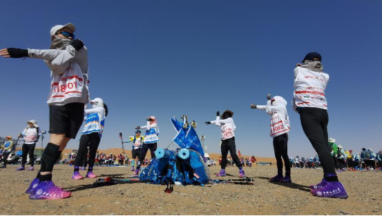 首次参加亚沙赛的B队队员2021级MBA员工孙浩川完赛后感叹:“来后悔三天,不来遗憾一辈子;风起黄沙更有生命,一沙一世界,沙如人生。”