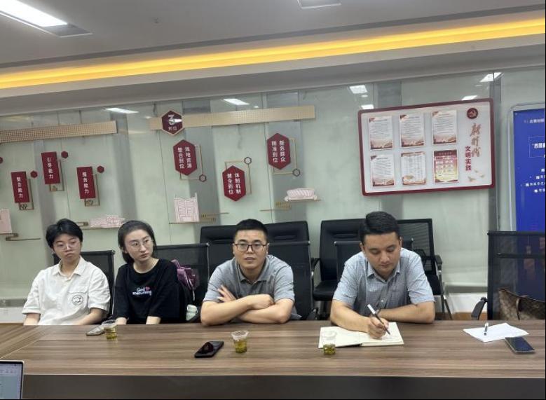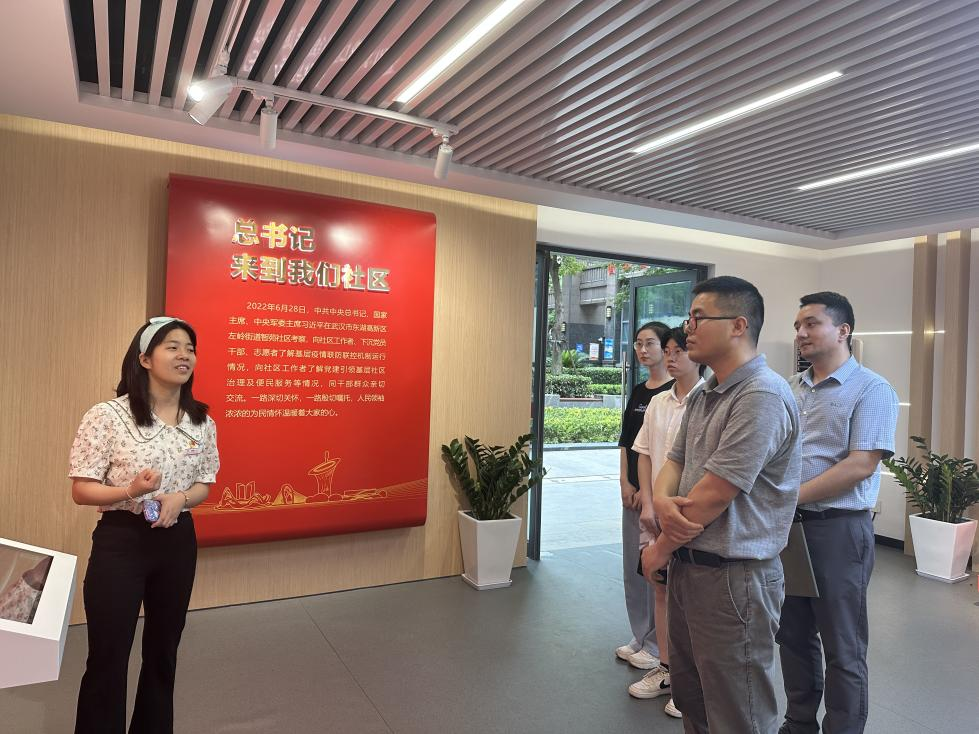 (通讯员 刘佳、李宜璋)6月5日下午,经济管理公司党委副书记李少杰、团委书记努尔夏提·居勒提带领团学代表、全国“两弹一星”宣讲团成员代表走访左岭街道智苑社区,深入学习习近平总书记2022年6月28日在武汉考察时的重要讲话精神,推进学习贯彻习近平新时代中国特色社会主义思想主题教育走深走实。进一步强化公司与智苑社区地合作联系,引导员工走进基层一线,弘扬志愿奉献精神。智苑社区团支部书记金成静,党建专员李梦蝶,光谷壹新社工项目主管覃敏姣、熊南叶及社区干事参加座谈和“志愿服务实践基地”挂牌仪式。