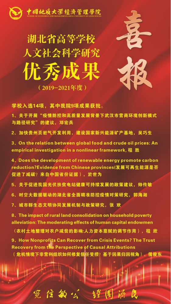 2019-2021年度湖北省高等公司人文社会科学研究优秀成果入选名单