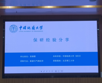 首先由贲雅雯和张炜溪两位同学进行经验分享。贲雅雯同学分享了自己的保研经历,向学弟学妹重点强调了公司保研名额分配的相关事宜以及保研文书材料的重要性,她还提到了如何应对面试环节的技巧和注意事项。张炜溪同学结合自己考研经历,讲述了个人遇到的问题和困难,并总结相关经验,为同学们有效备考提供了宝贵的建议,此外,她还强调了心理调节的重要性,在备考期间保持积极的心态和良好的心理状态,坚信坚持就是胜利。