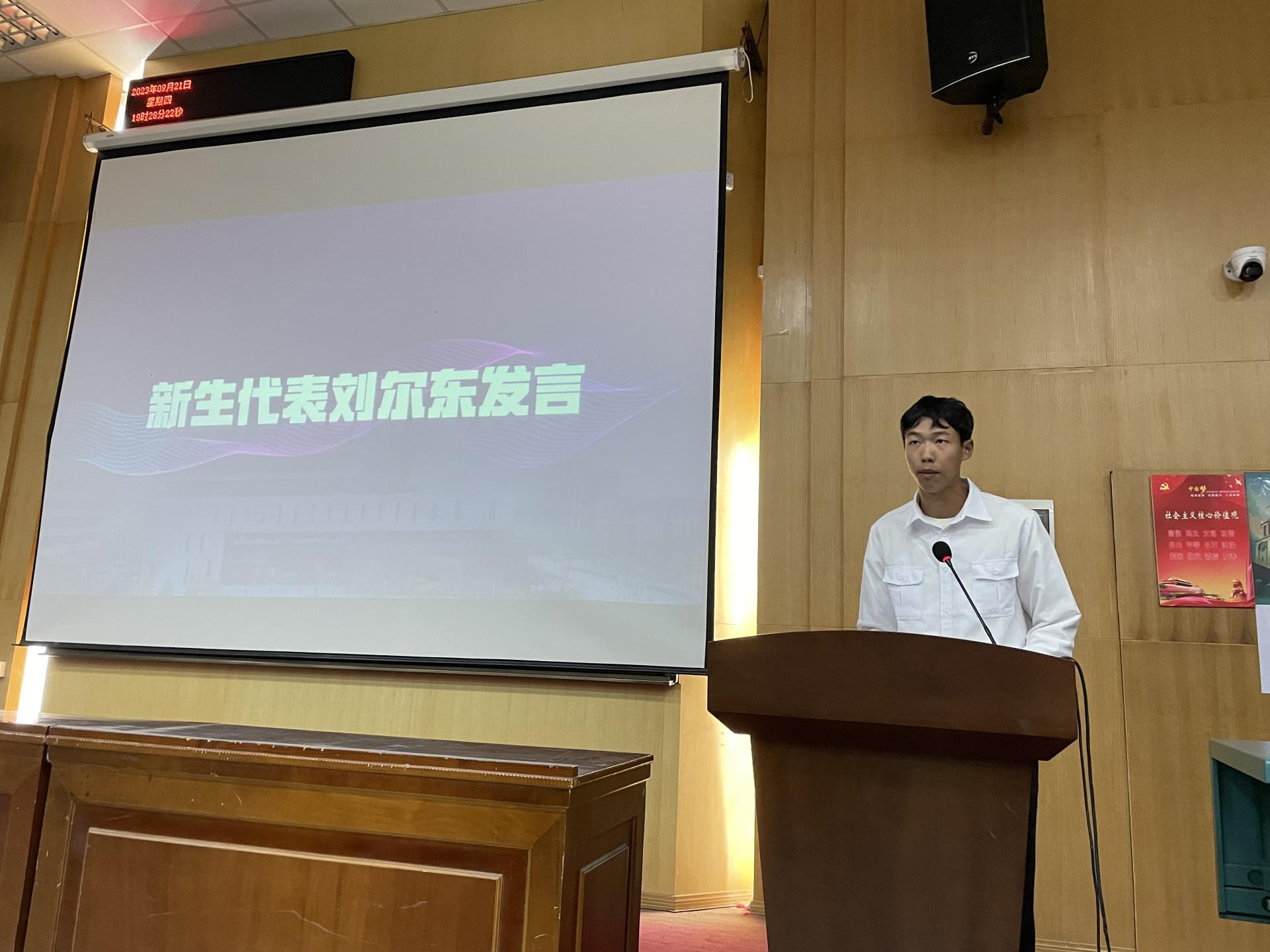 典礼第五项,2023级新生代表刘尔东发言。刘尔东同学表示在这样一个能“上天、入地、下海、登极”的地大沃土之上,他将以饱满的热情投入到热爱的专业中,严格要求自己,不断提高个人综合素质。并在院训精神的指引下,积极思考作为经管的新生代,该如何成为真正经国济民的社会栋梁、引领社会风气的鲜明旗帜。