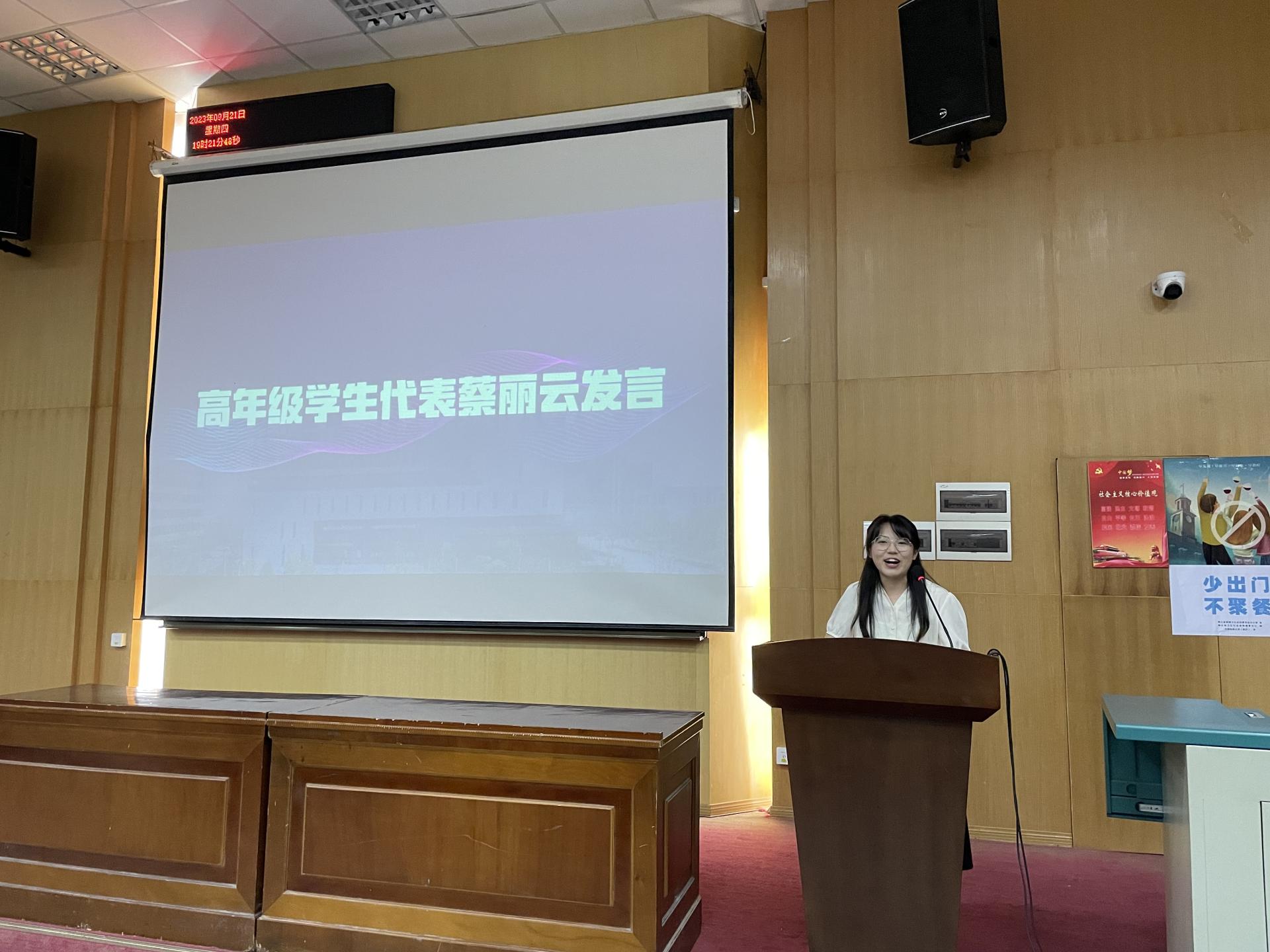 典礼第四项,高年级员工代表蔡丽云发言。蔡丽云同学将自己的大学经验向同学们分享:第一,勇于探索,拓展未知,在每一次的探索与体验中不断明确奋斗的目标;第二,以终点的心态规划起点,珍惜资源、抓住机会,为老员工涯做好规划;第三,知行合一,经世致用,以脚踏实地的努力、认真勤奋的学习、坚持不懈的磨练创造更高的人生价值、社会价值。