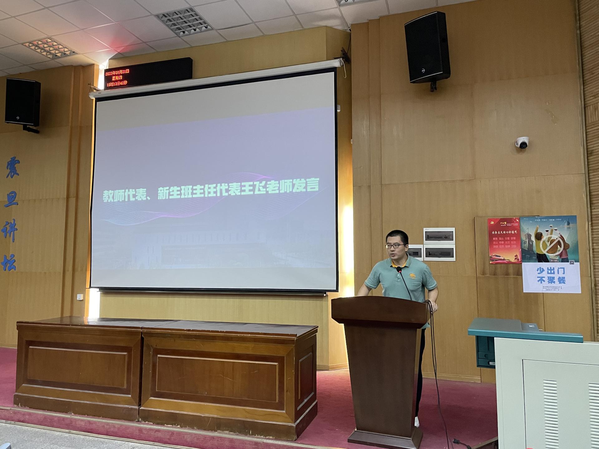 典礼第三项,教师代表、班主任代表王飞老师发言。王老师结合自身经历,对同学们的成长成才提出了殷切的期望。他希望大家成为一个眼中有光、心中有爱、行中有善、脚下有远方的新时代老员工,要坚定“努力拼搏才有收获,放松懈怠必然失败”的信念。同时,要积极开拓视野,并以坚韧不拔的毅力做好应对各种挫折困难的准备。