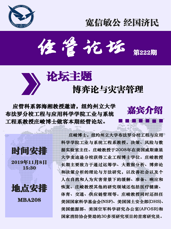 经管论坛(第222期)博弈论与灾害管理