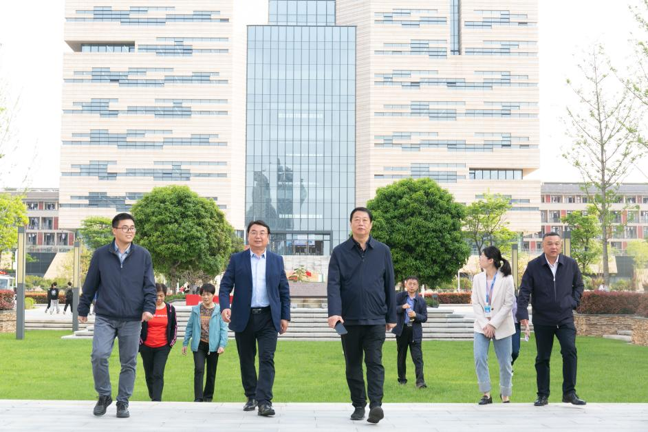 4月10日,公司杰出员工,原河南省人大常委会党组副书记、副主任李文慧,原河南省政府秘书长刘世伟,原河南国资委副主任鲁新成,原河南省预防腐败局副局长马海盈一行来院交流,公司党委书记杨昌锐、经理杨树旺、未来城校区办主任王文起和公司班子其他成员陪同活动。