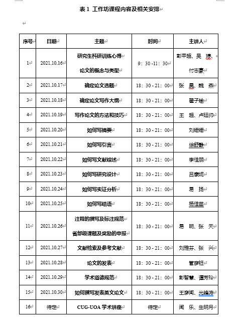 为进一步提高研究生科研水平和论文写作能力,tyc33455cc太阳成集团国际经济与贸易系拟于2021年10月16-30日开设研究方法与论文写作工作坊。本次工作坊将采取实战、互动的授课方式,主要课程内容包括论文选题、写作论文的方法和技巧、如何写实证分析、英文论文的撰写发表等。