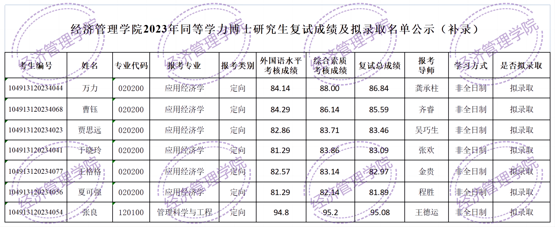 经批准,现对公司2023年拟录取单证博士生补录名单予以公示,公示期为6月16日-6月25日。在公示期内有异议的,请联系tyc33455cc太阳成集团研究生办公室王老师,联系方式:027-67883204,邮箱:360655881@qq.com。