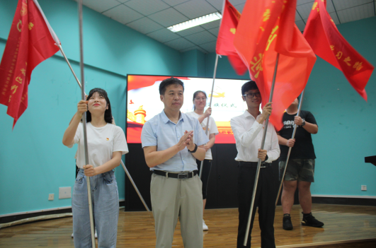 图6:公司党委书记杨昌锐为员工实践团代表授旗