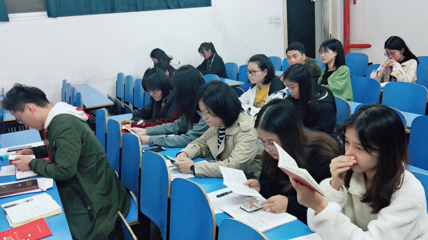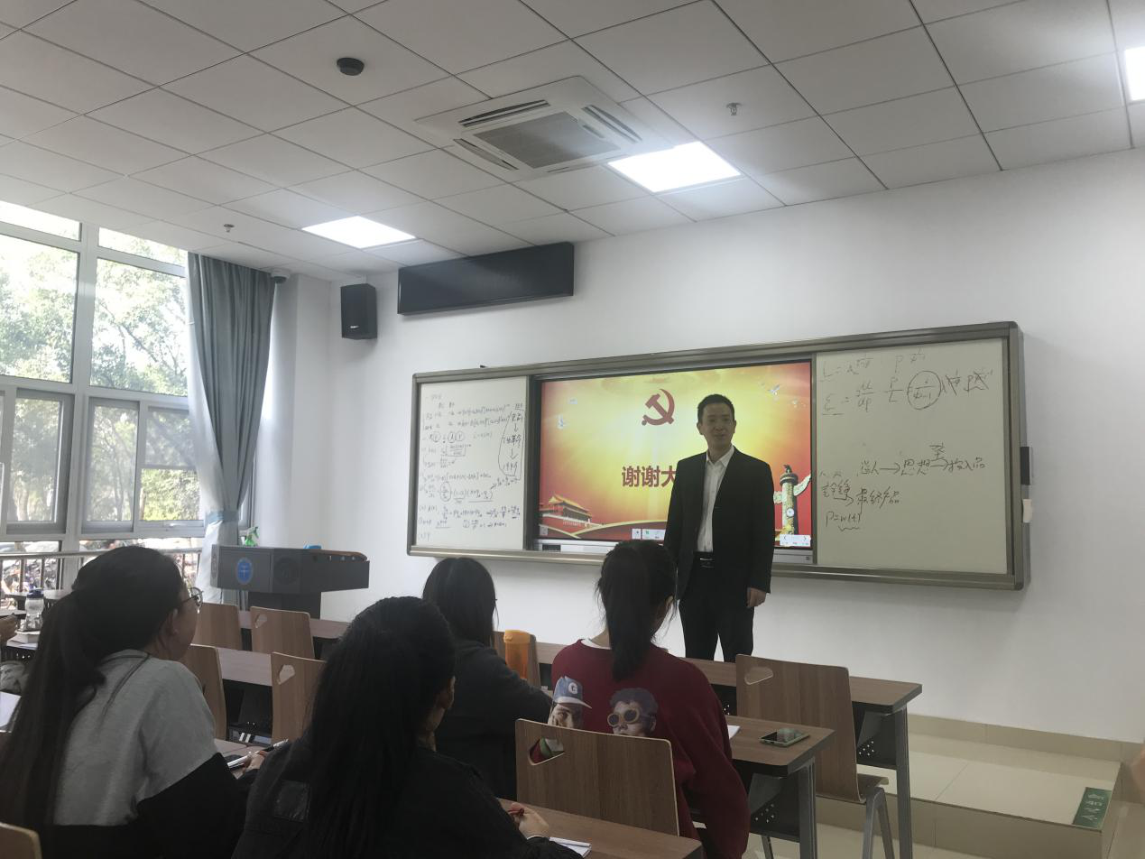 在校外居民社区兼职党务工作的张宇同志,作为2018级管理班硕士研究生党支部的书记,结合自身在校内校外基层工作的真切体会和丰富经验,围绕“牢记光荣历史,奋力追梦圆梦”专题,以《突出政治教育,夯实组织基础》为题为全体员工党员授课。