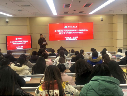 图2:高翔莲教授讲授《学习党的十九届五中全会精神》专题党课