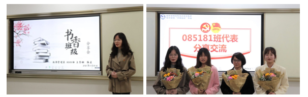 首届旅游管理“书香班级”085181班同学代表陈星和王秀珊介绍并分享了该班建设“阅读型班级”的做法及成效。自“书香班级”启动以来,该班建设并制定了图书统一管理和有序流转制度,并在广泛征询同学阅读需求的基础上创造条件不断动态更新书库。在两年多的建设中,班级积极倡导“我与好书同行”,努力践行“我读书,我快乐,我成长”理念,以“多读书,读好书,好读书”为指引,鼓励每人每天自觉读书至少半小时、每周阅读笔记及分享优秀读物。“书香班级”在帮助同学们养成良好读书习惯的同时,以阅读感悟与收获的分享和交流,让班内同学在相互学习中不断提升专业素养、夯实文化底蕴、陶冶人文情操,有力助力大家向着“最美地大经管人”和“最美地大旅游人”而不断努力和成长。两位学长还寄语学弟学妹要领悟并传承活动精神、传递内心骄傲。