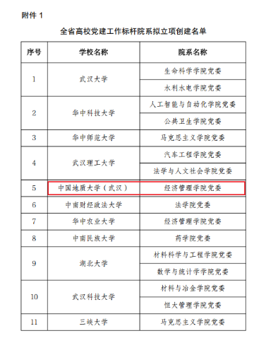 (通讯员 蔡杨)近日,湖北省委教育工委公布了全省高校基层党建示范创建名单,共遴选产生60个院系党组织、100个党支部分别作为全省高公司党建工作标杆院系、样板支部培育创建单位。经济管理公司党委入选“全省高公司党建工作标杆院系”培育创建单位。