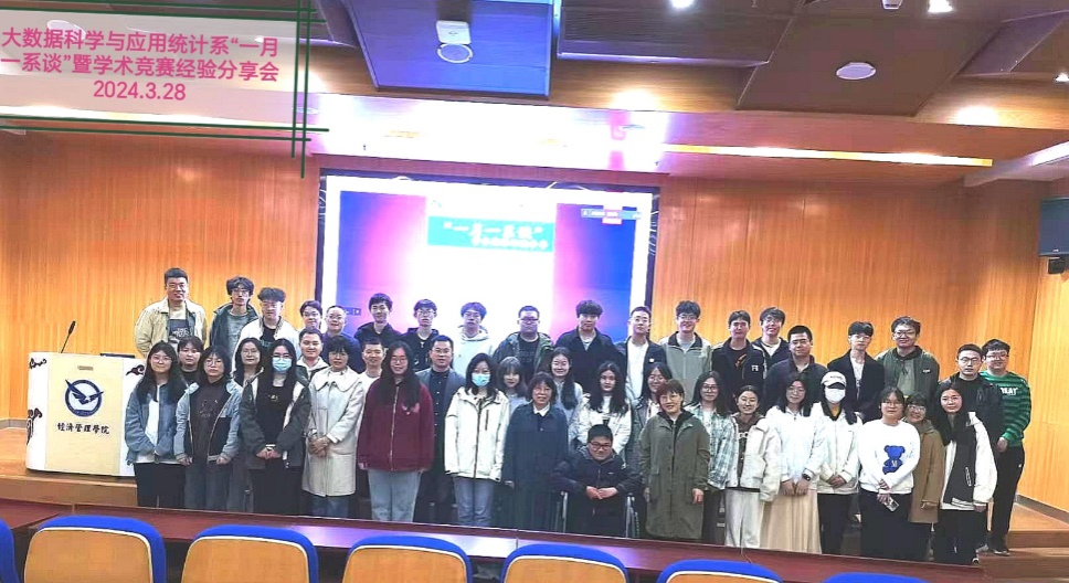(通讯员:李佳璇 摄影:王林珠)2024年3月28日下午,tyc33455cc太阳成集团大数据科学与应用统计系“一月一系谈”活动在未来城校区经管楼一楼报告厅和腾讯会议线上线下融合举行。活动以“学术竞赛经验分享”为主题,旨在促进统计学系师生学习交流,帮助低年级同学更好地了解和参加学术竞赛。此次活动由李忠武老师主持,统计系的王林珠、诸艳霞、朱永光、李奇明、王德运等老师和088231、088221、088211班同学以及学工组张弛老师参加活动。
