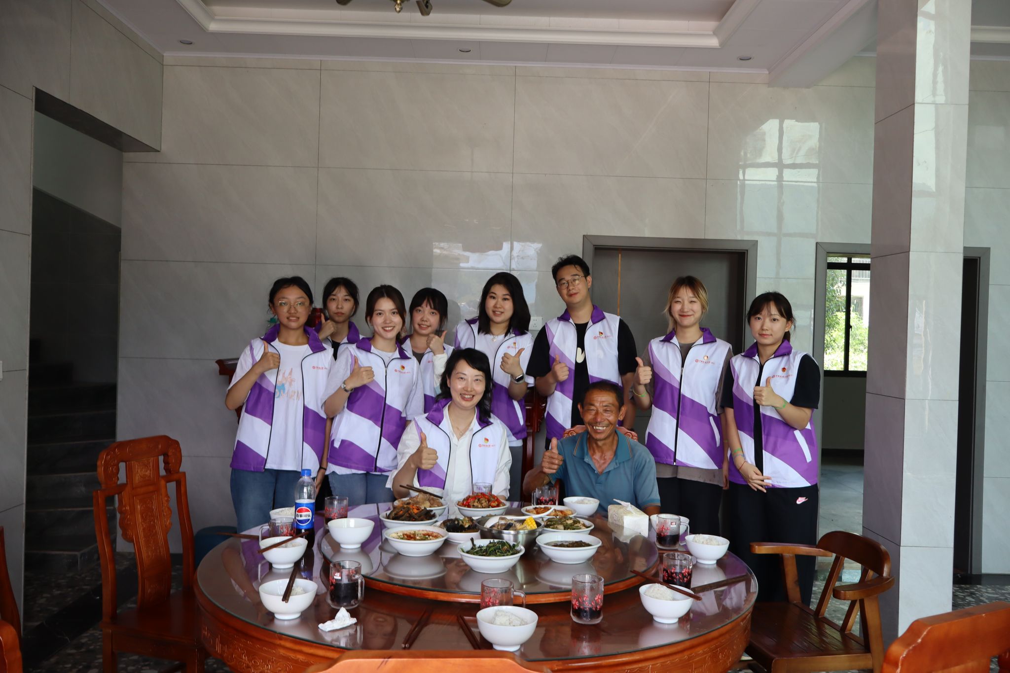 从八角楼继续出发,实践团重走红军小道,步行三公里,亲身体验红军的艰苦奋斗和顽强拼搏。面对山路的泥泞、湿滑和蚊虫,队员们不惧艰苦、快速前进,到达了茅坪镇马源村老乡家。在这里,团队成员们分工合作、相互协作,利用有限的食材制作了一顿特别的红军餐,体验红军苦与乐和军民鱼水情。