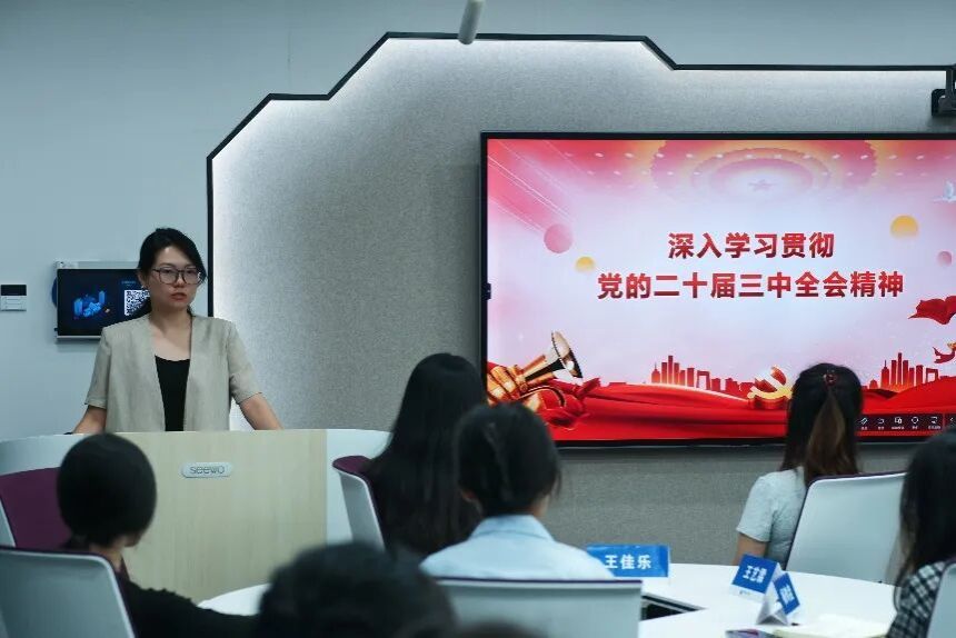 9月21日和24日,公司研究生辅导员陈静老师分别向2022级专硕应用统计团支部和公司研究生会团支部开展了“深入学习贯彻党的二十届三中全会精神”的主题宣讲活动。在该活动中,陈静老师紧密围绕习近平总书记在党的二十届三中全会上的重要讲话精神,以及《中共中央关于进一步全面深化改革、推进中国式现代化的决定》中的重要指示,从全会的历史背景、精神实质以及重要成果进行了深入浅出、条理分明、形象具体的解读。她指导同学们提高政治觉悟,树牢“四个意识”,坚定“四个自信”。在活动结束时,陈静老师激励同学们将会议精神内化于心、外化于行,以实际行动投身于国家建设的伟大事业中。