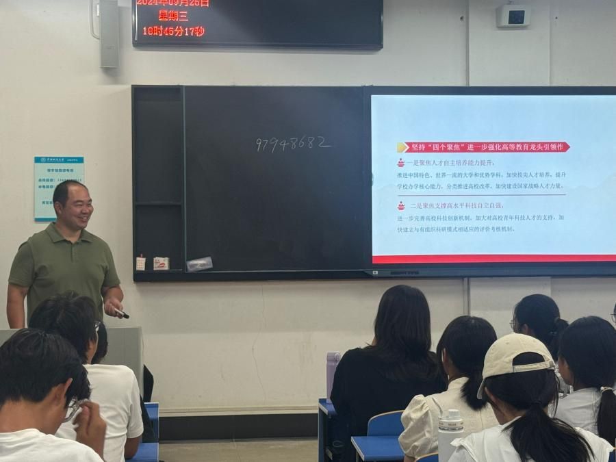 9月24日,公司党委副书记李纪亮于南望山校区为08S245、08S246、08S247三个团支部宣讲了全国教育大会精神,引领同学们深入学习习近平总书记在2024年全国教育大会上的讲话精神。李书记采用生动风趣的讲授方法,结合众多实际案例,详尽阐述了我国教育事业的发展现状以及建设教育强国的紧迫性与重要性。他向同学们讲解了“我们要建成怎样的教育强国”“建成教育强国要依靠怎样的基本路径”等方面问题,带领同学们积极响应和互动。同学们纷纷表示将确立正确的世界观、人生观、价值观,坚守学习初心、砥砺奋进,成为国家与社会所需的优秀人才,与祖国共同实现教育强国梦想。