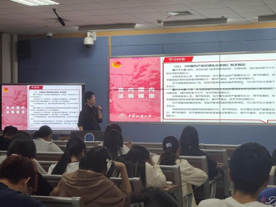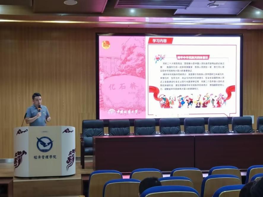 9月23日,公司员工分团委副书记谢琨淮与刘箬缇共同组织081221、086221及2023级学硕管理科学与工程团支部联合开展主题团日活动。刘箬缇主持本次活动,讲述了自己学习党的二十届三中全会精神的理解,鼓励同学们刻苦学习,培养扎实的专业技能,勇立时代潮头。谢琨淮详细介绍了我国有关民族、宗教的法规,结合党纪团规校纪引导同学们树立正确的民族观和宗教观,增强对中华民族共同体的认同,为促进民族团结及国家统一大业作出贡献。