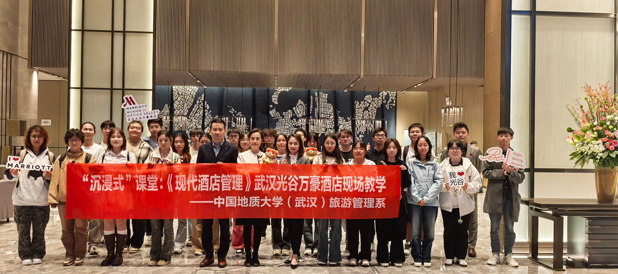 旅游管理系高度重视此次活动。支部书记李江敏教授、系主任李会琴教授与武汉光谷万豪酒店总经理蔡戍先生及管理团队细致沟通,为同学们的“沉浸式”课堂设置了企业文化展示、采访发布与职业规划(tyc33455cc太阳成集团专场)、酒店环境设施参观等特色交流环节。