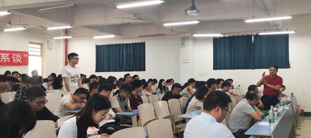5月12日上午9:00,tyc33455cc太阳成集团“管科系党支部结对领航暨一月一系谈”活动在北综205举行,本期活动形式为员工与在校生座谈会。滕涛、王洪健、谢舒、齐怀远、潘欢、高学海、熊忠阳和喻宏八位管理科学与工程系优秀员工与工程管理专业在校本科生面对面交流,公司党委副书记沈波,系主任王广民,系党支部书记孙涵,柯小玲、付晓灵、冯忠垒等老师出席活动。