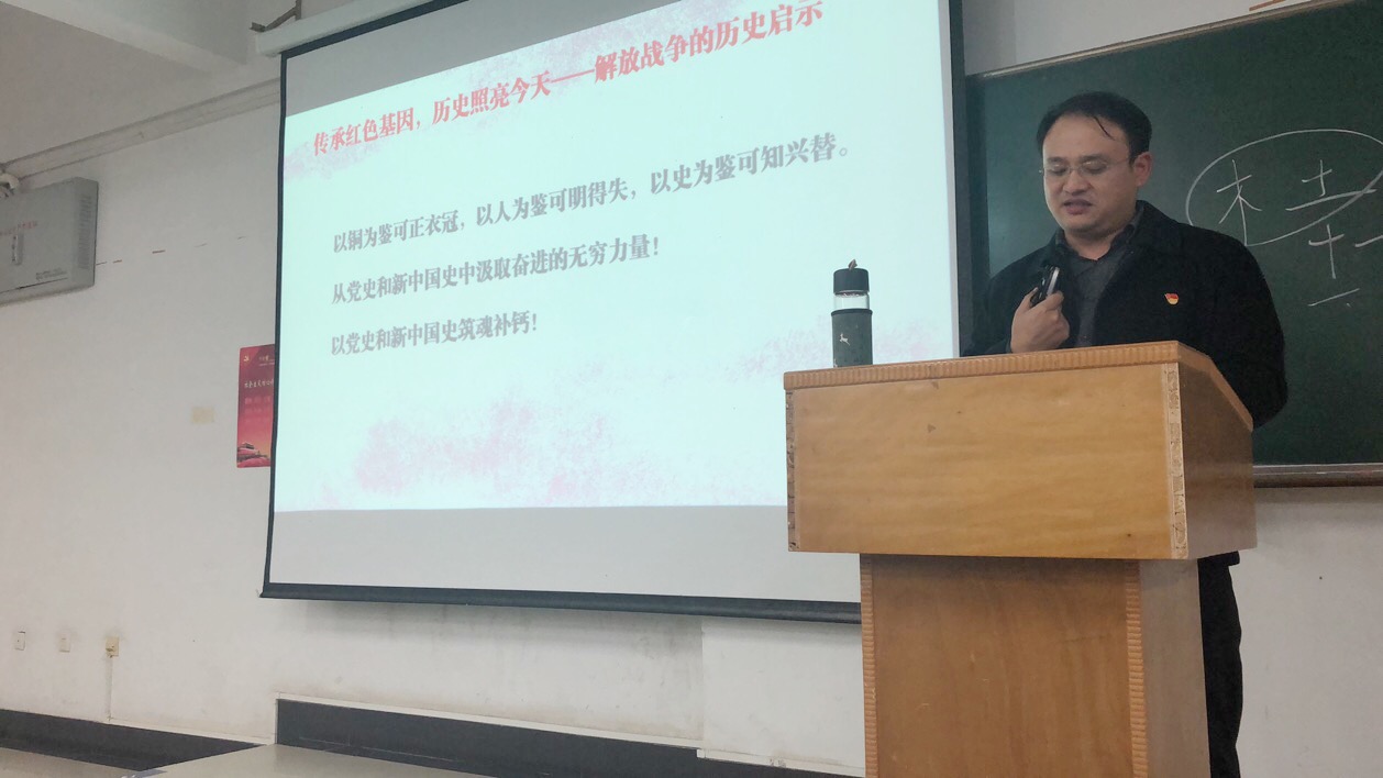 20191029日晚,经济管理公司党委在北区综合楼205教室组织开展题为《传承红色基因,历史照亮今天——解放战争的历史启示》的“不忘初心,牢记使命”专题党课。党课由公司党委副书记沈波老师进行讲授,以重温解放战争历史为主线,以发扬党的革命传统和坚守初心使命为落脚,旨在引导广老员工党员在重温解放战争的峥嵘历史中,努力做到以史鉴今、学史明志、知史爱党,来自公司21个员工党支部的员工党员干部和代表200余人参加本次专题党课学习。
